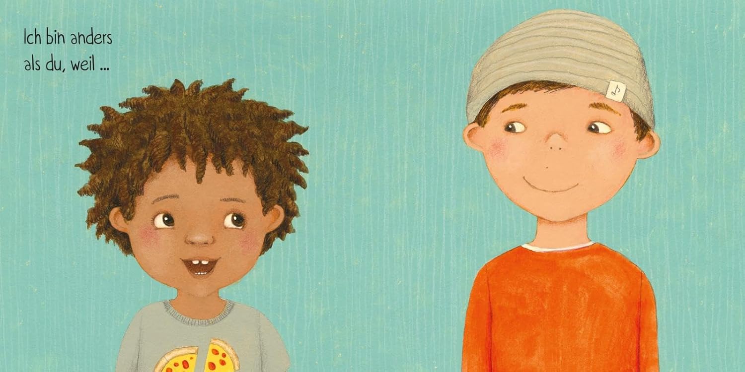 Ich bin anders als du – Ich bin wie du is a Wendebuch, meaning it has an interesting ‘flip’ format where you read each half of the book from the outside in and they meet in the middle.